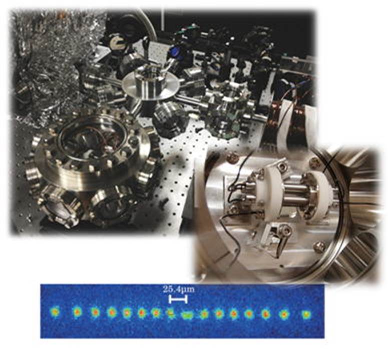 物理量を計測する際に,量子力学の原理に基づいた計測手法を用いることで古典的な計測手法では到達できないほどの精度を実現することができる可能性があります。それは広く量子センシングと呼ばれる技術であり,光や粒子などを異なる状態の重ね合わせ状態に用意することで起こすことのできる干渉現象を用いることで実現することができます。この研究では,電場によってトラップされたイオンを物質波として用いることで,その干渉現象から装置の回転を計測できる可能性を追求しています。この技術は未だ世界のどのグループも実現していませんが,実現できればジャイロスコープの小型化や高精度化などの可能性が期待されます。